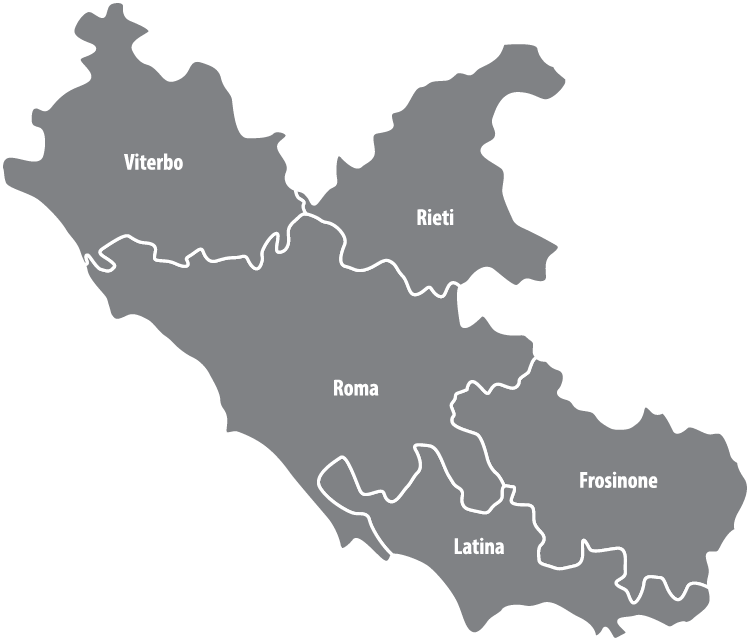 Die Region Latium gliedert sich in die Provinzen Frosinone, Latina, Rieti, Rom und Viterbo.