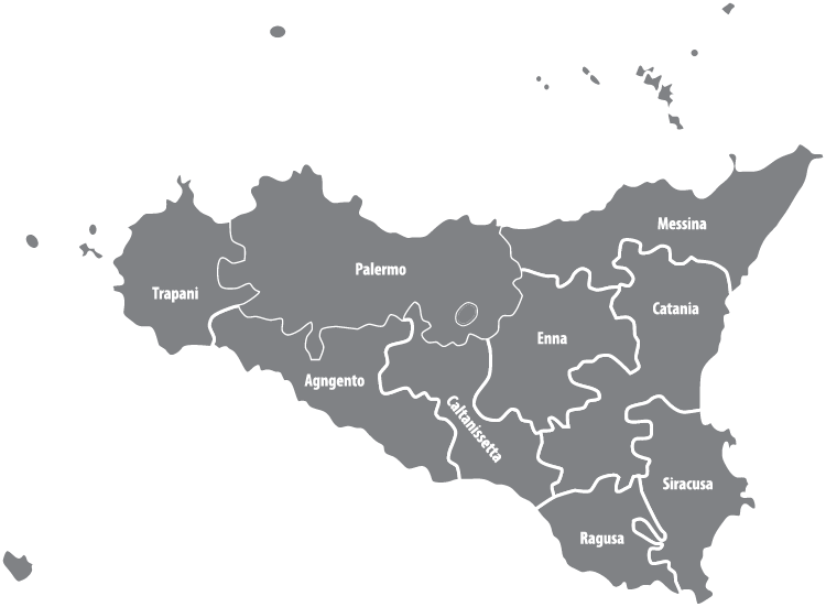 Die Region ist in die Provinzen bzw. Metropolitanstädte Agrigent, Caltanissetta, Catania, Enna, Messina, Palermo, Ragusa, Syrakus und Trapani.